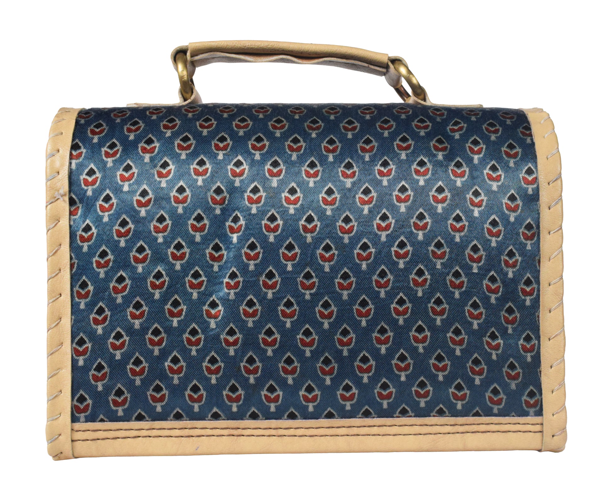 * UNIQUE FEATURE : Rexine Handle Bag with Strap has Natural Dye Hand Block Print Mashru Silk and Antique Aahir Hand Embroidery Sides. Unique Blend of Tradition and Style