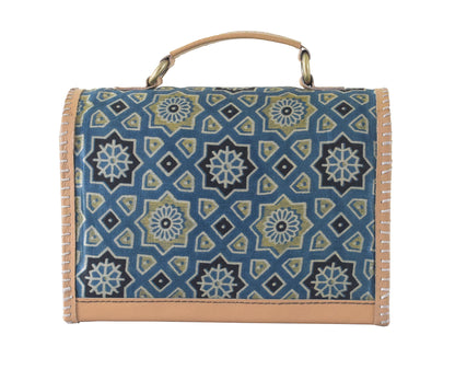 Ajrakh Pure Leather Leathercraft Hand Made Hand Embroidery Sling Bag Mirror Work - 15 cms Height x - SKU : AB21302A