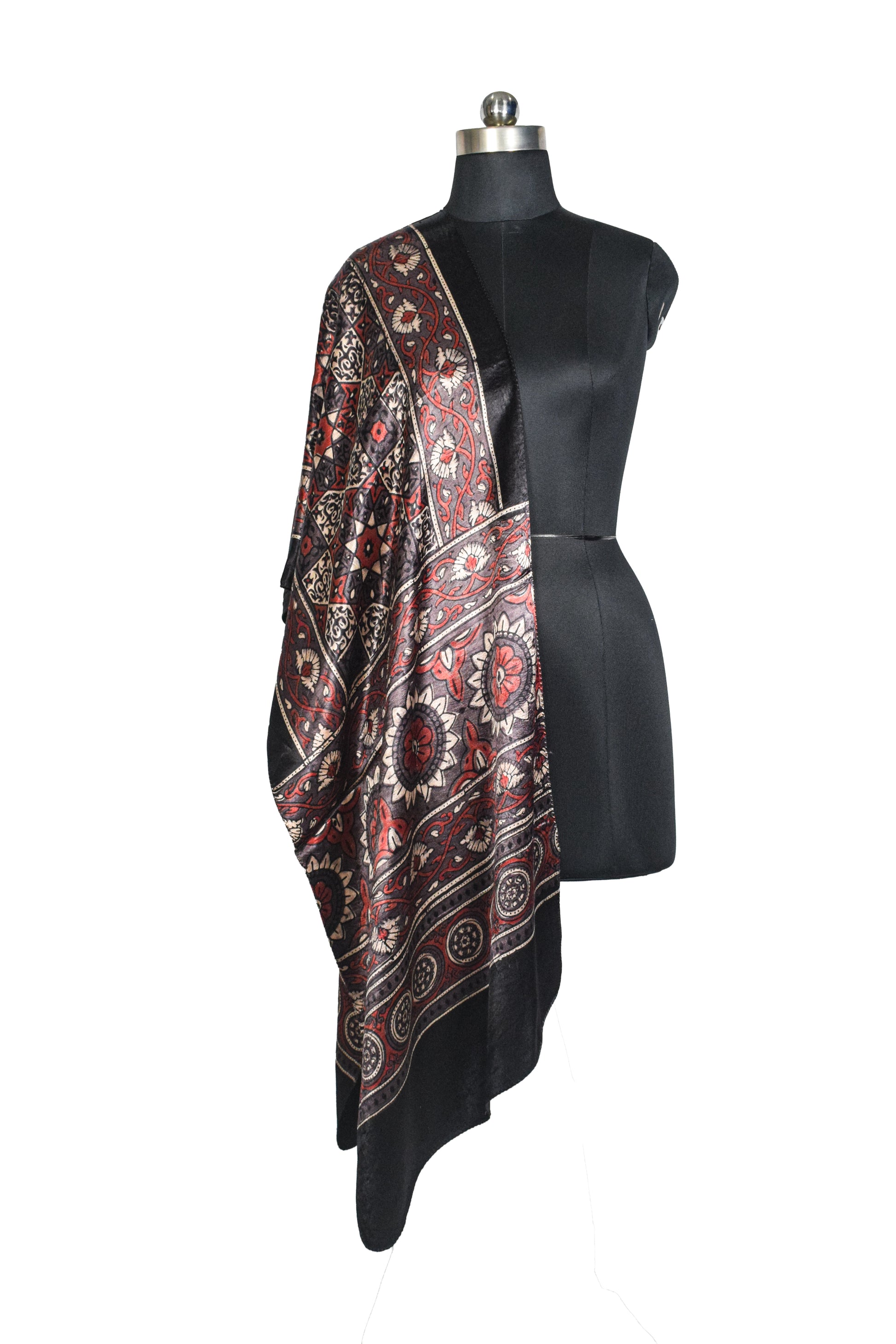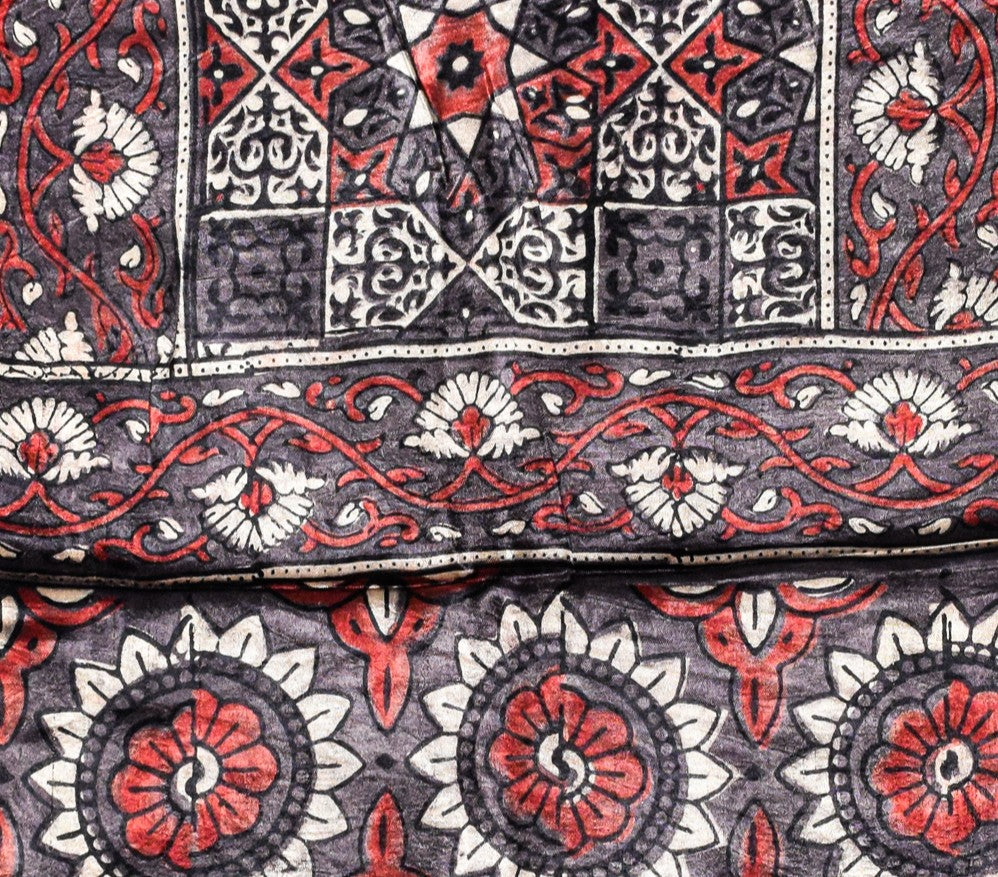 Ajrakh Mashru Silk Natural Dye Hand Block Print Stole - 2 Mtr Length - SKU : JH02C02A
