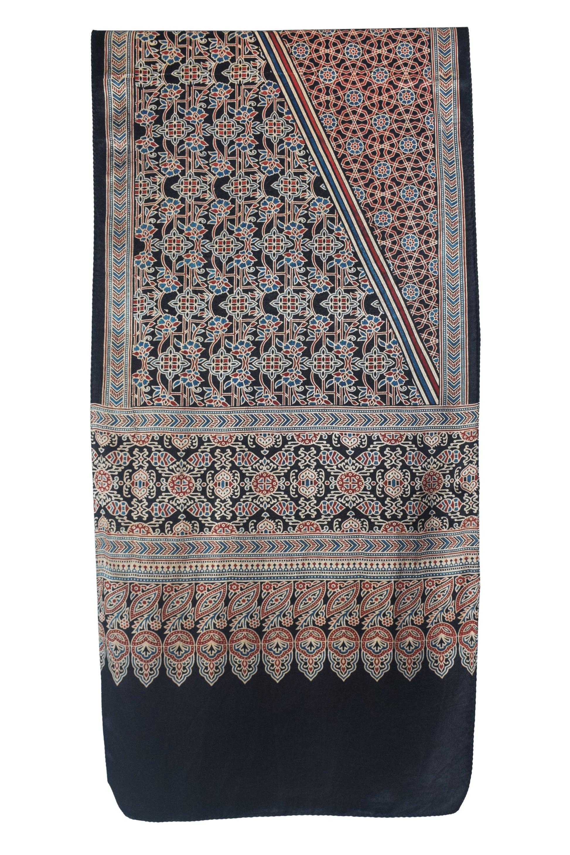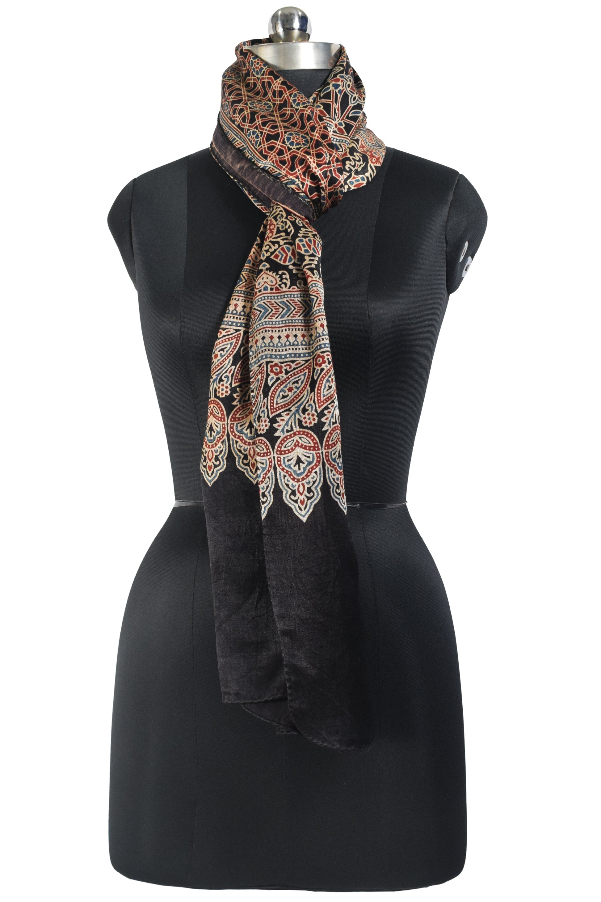 Ajrakh Mashru Silk Natural Dye Screen Print Hand Printed Stole - 2.1 Mtr Length - SKU : JH25601M