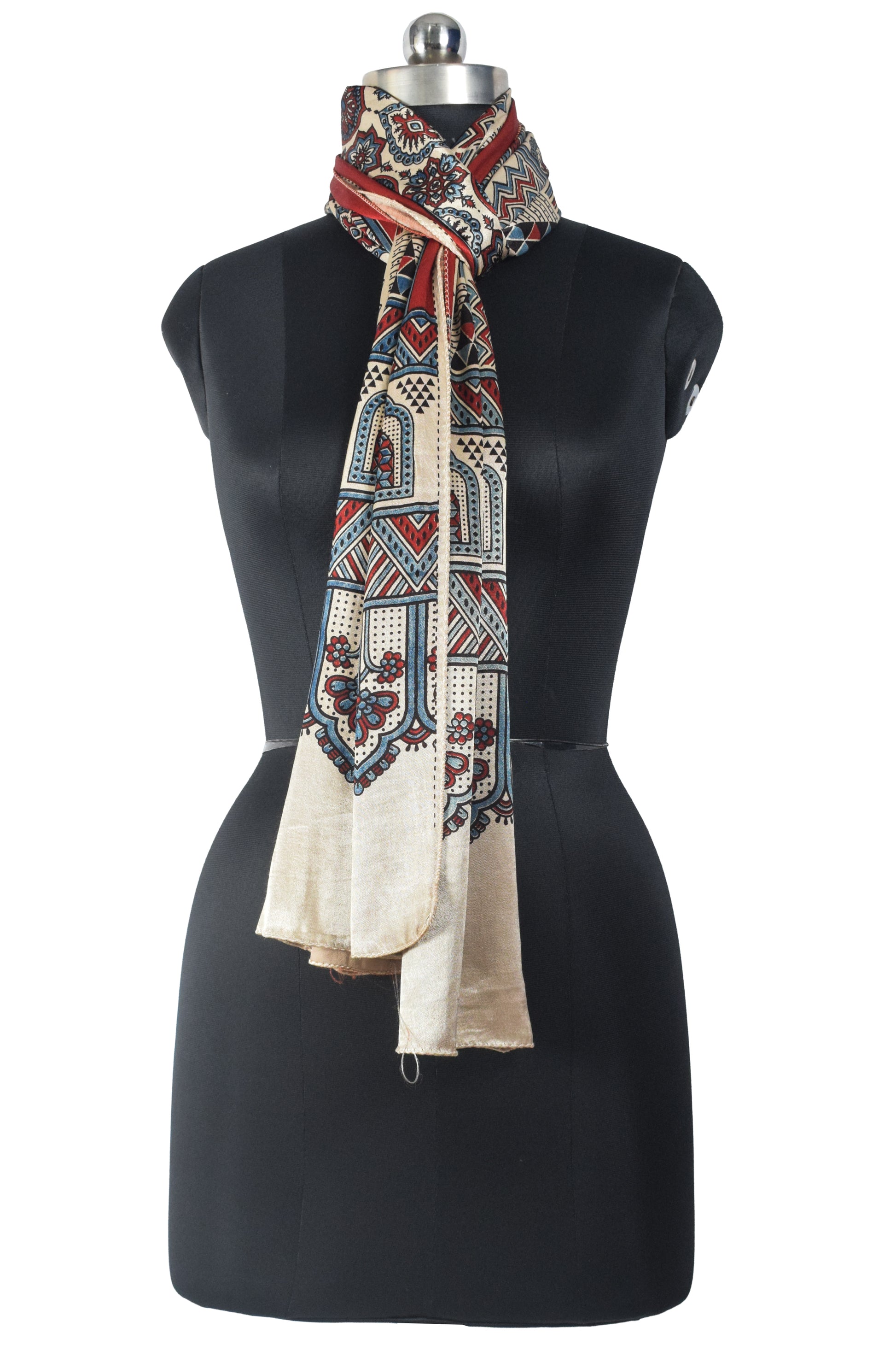 Ajrakh Mashru Silk Natural Dye Screen Print Hand Printed Stole - 2.1 Mtr Length - SKU : JH25601Z