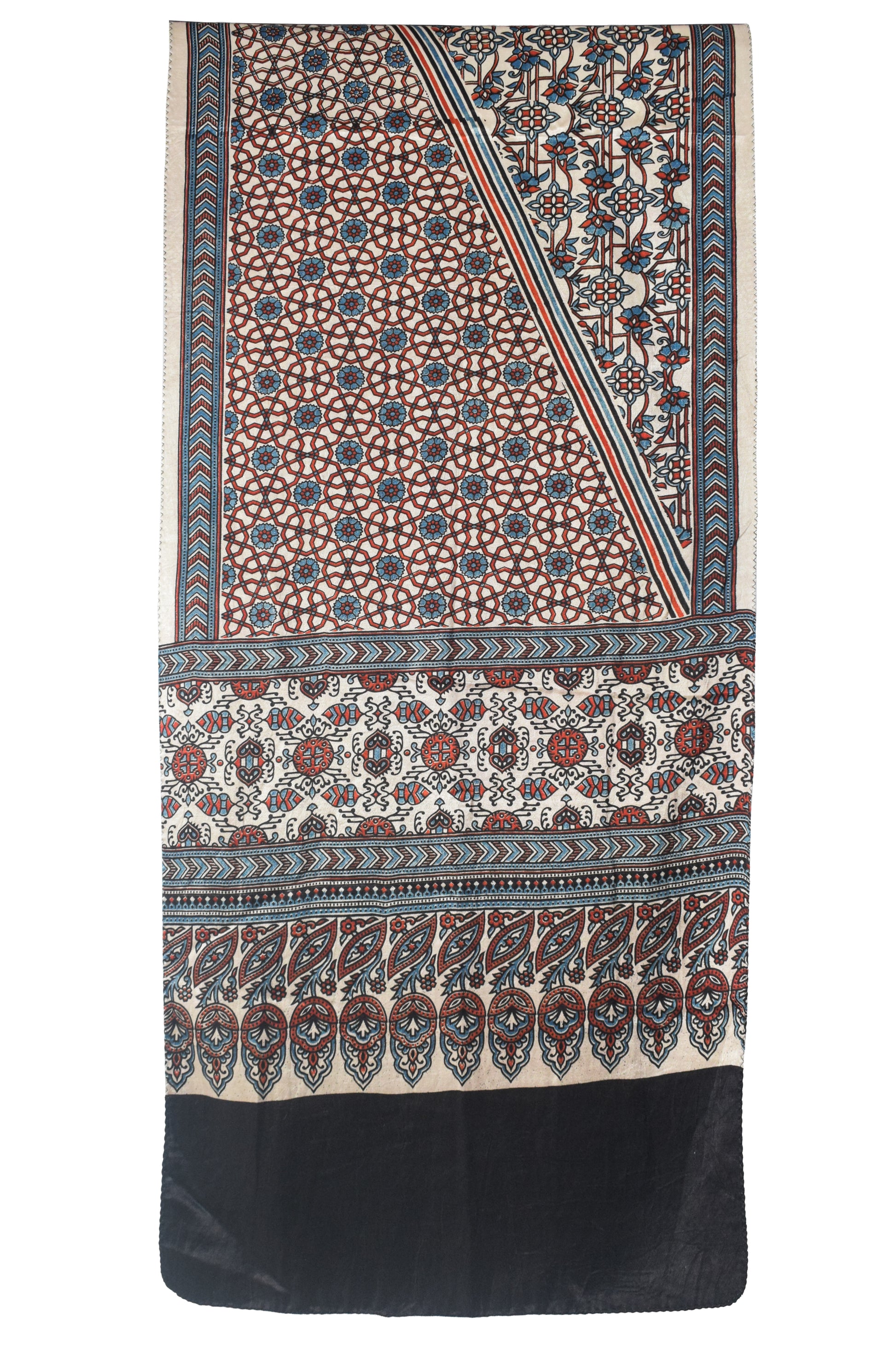 Ajrakh Mashru Silk Natural Dye Screen Print Hand Printed Stole - 2.1 Mtr Length - SKU : JH2560AB