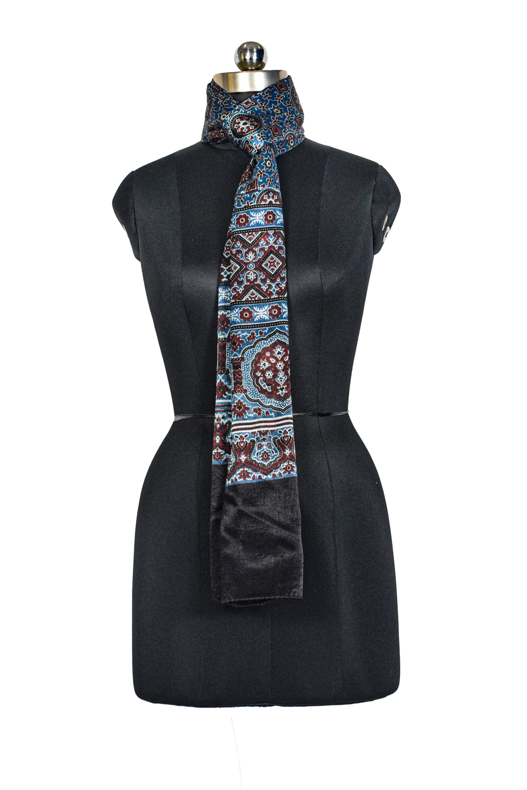 Ajrakh Mashru Silk Natural Dye Three Colour Print ( 3 Kam ) Screen Print Hand Printed Stole - 2.1 Mtr Length - SKU : JH02C0AA