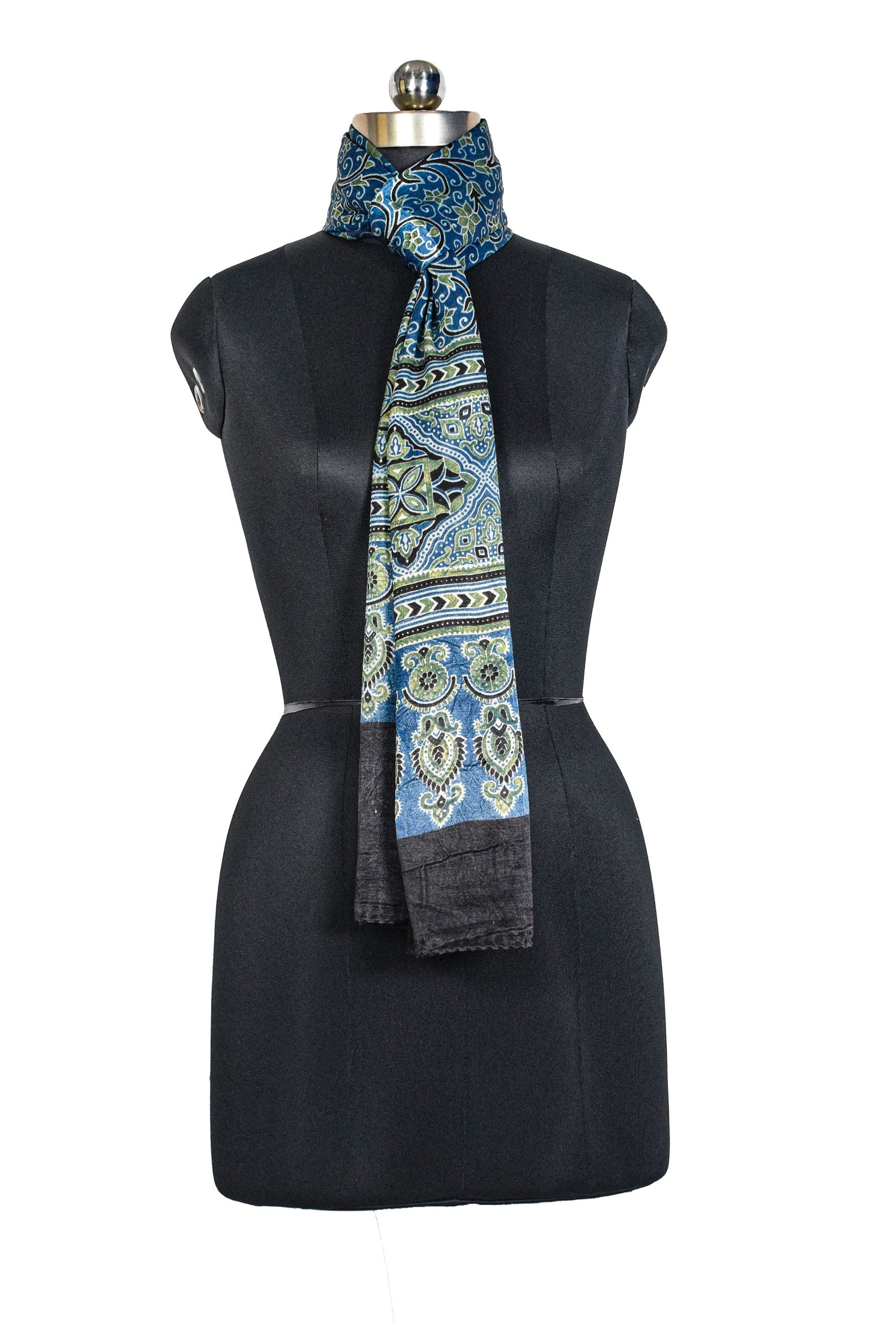 Ajrakh Mashru Silk Natural Dye Three Colour Print ( 3 Kam ) Screen Print Hand Printed Stole - 2.1 Mtr Length - SKU : JH02C01E