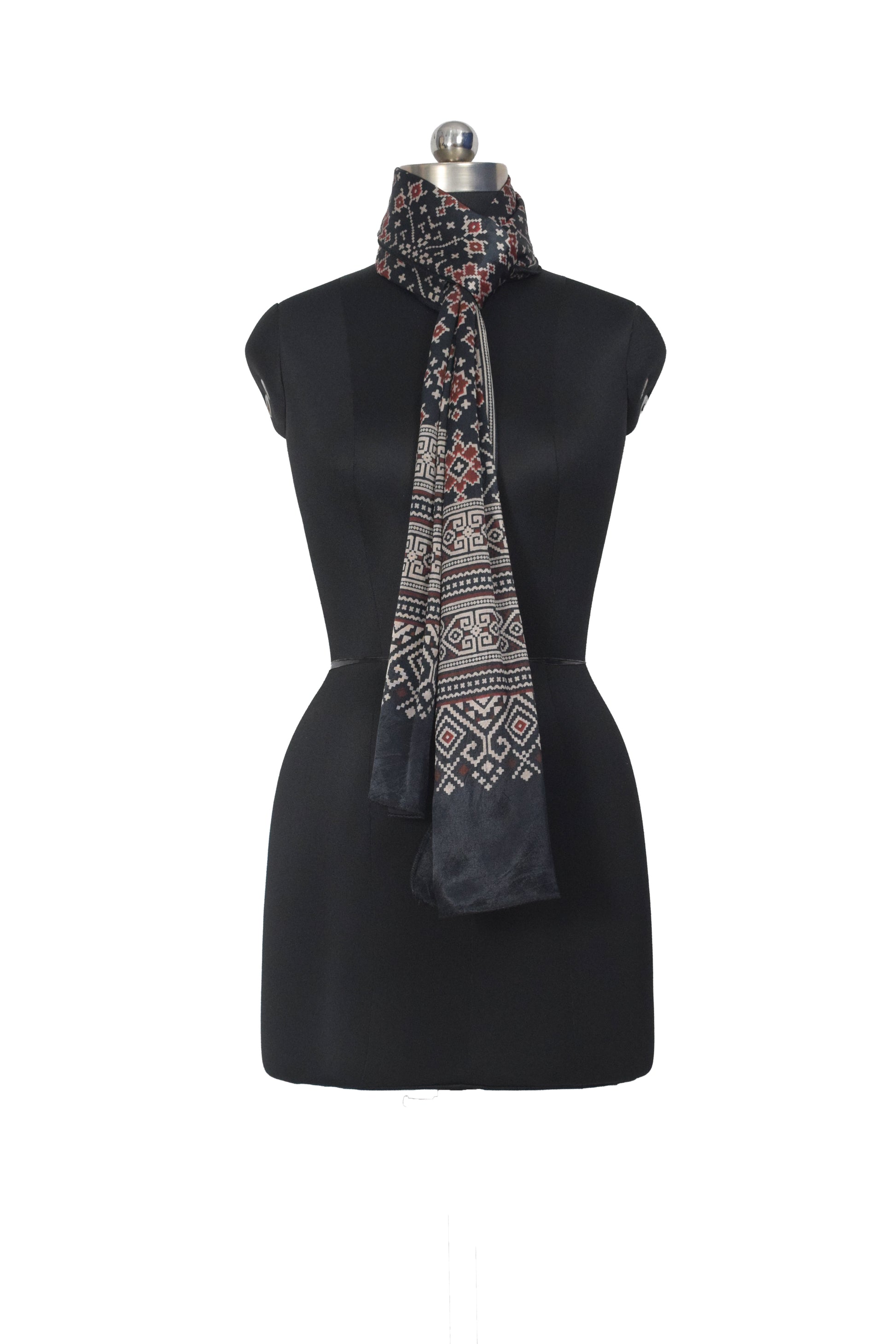 Patola Print Mashru Silk Three Colour Print ( 3 Kam ) Screen Print Stole - 2.1 Mtr Length - SKU : JH26102A