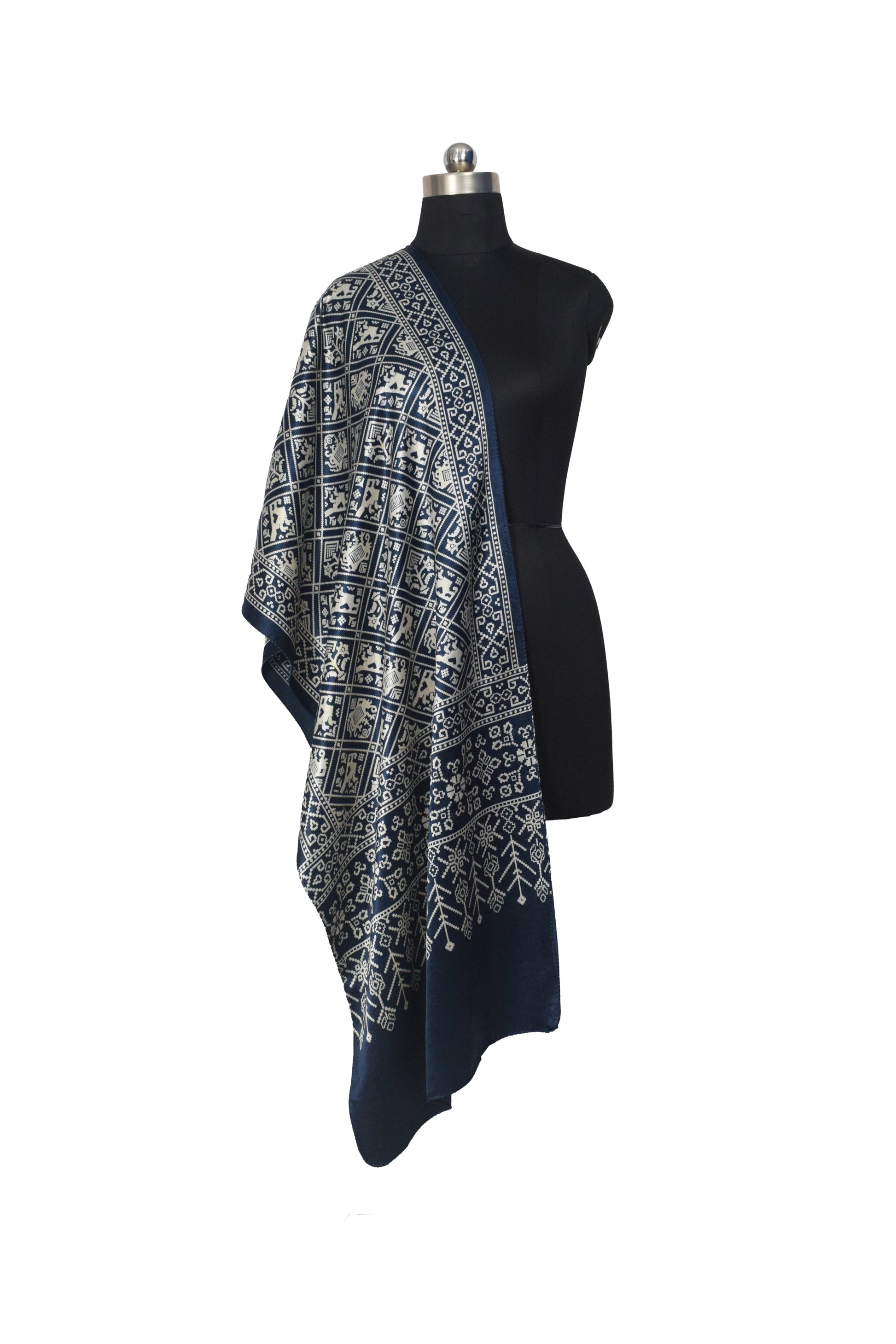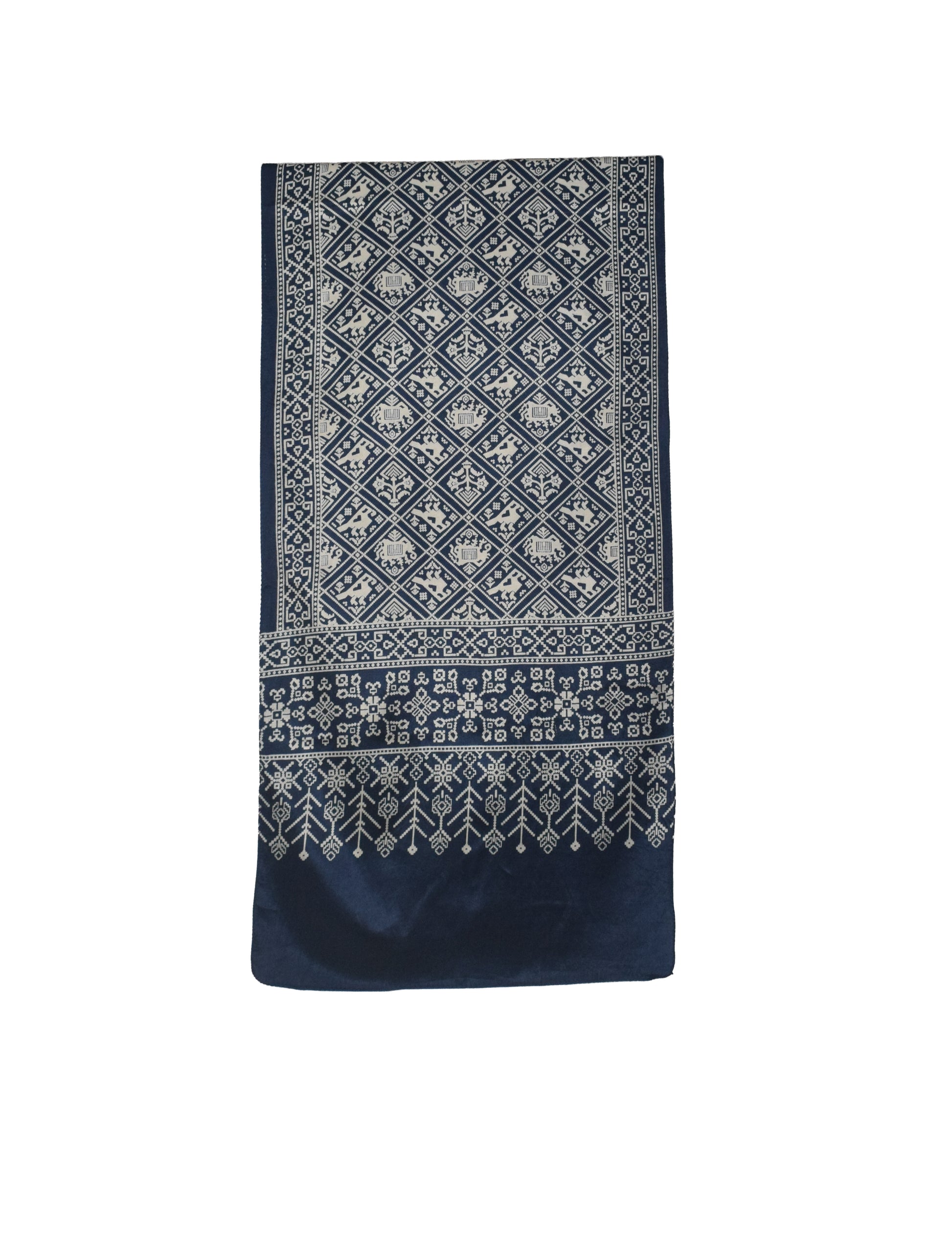 Discharge Print Mashru Silk Screen Print Hand Printed Stole - 2.1 Mtr Length - SKU : JH26103D