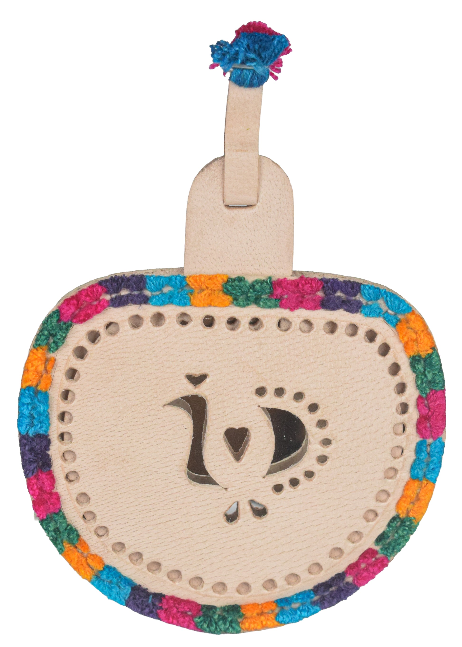 * UNIQUE FEATURE : A Motif is skillfully created with hand with Leather Craft Punch tools on leather. Leather is fixed on background of vivid coloured fabrics as its fixes mirror on board
