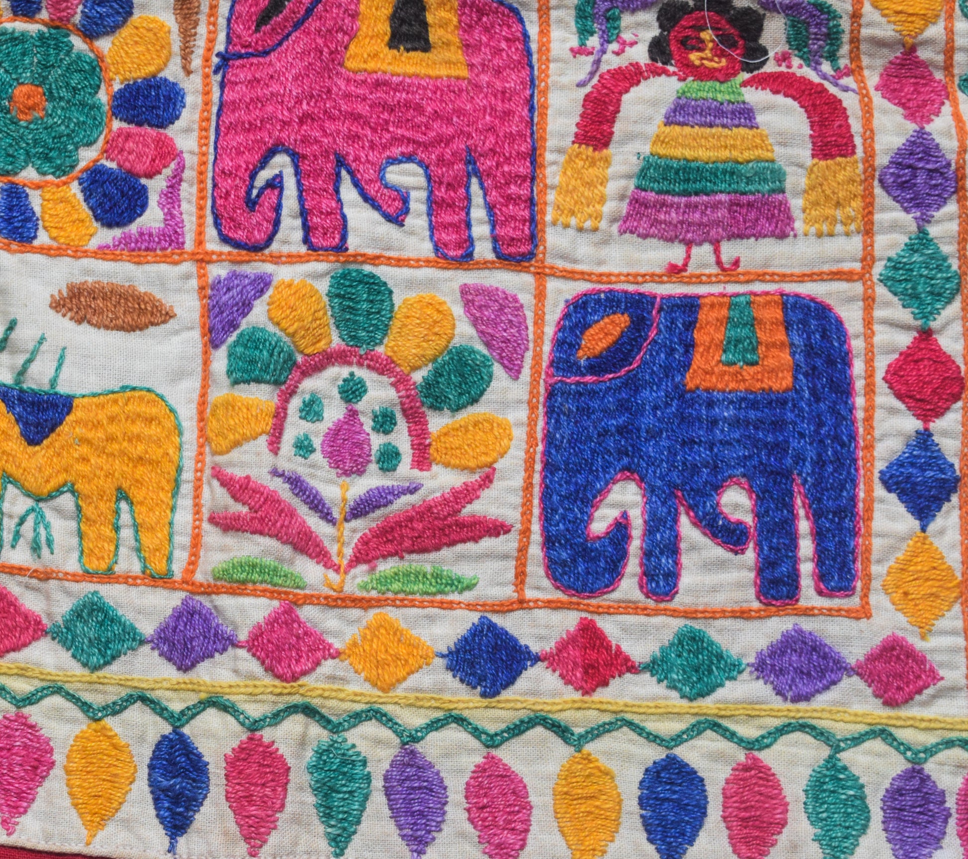 Hand Embroidery Cotton Antique Work Wall Decoration - 65 cms Length - SKU : AD01501A