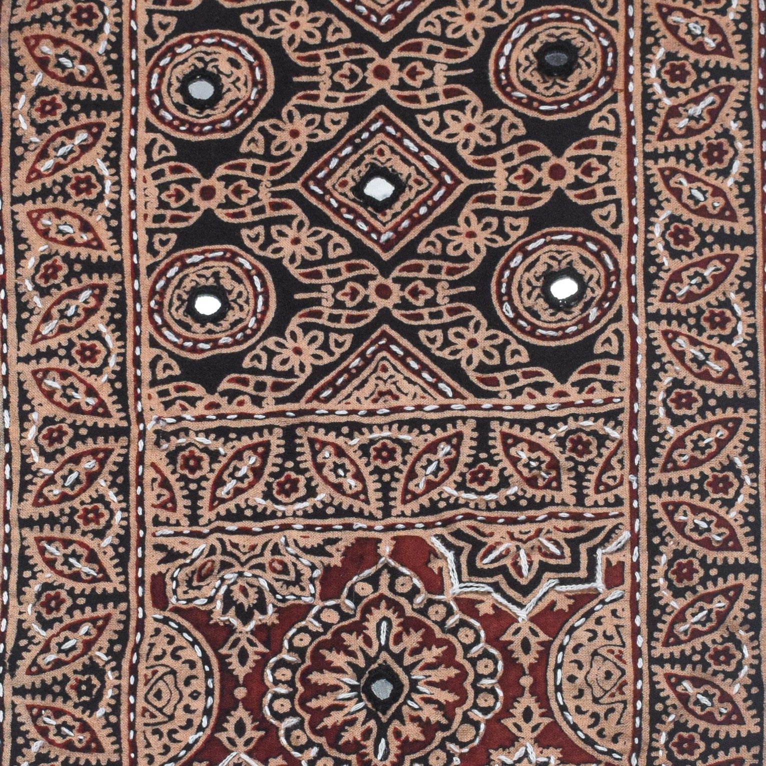 Ajrakh Cotton Natural Dye Small Mirror Work Hand Block Print Yoke Fabric Applique Patch For Kurta - 37 cms Length - SKU : ID18803I