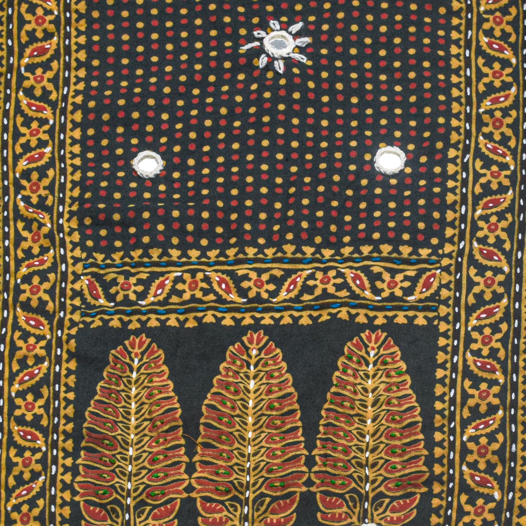 Ajrakh Cotton Natural Dye Small Mirror Work Hand Block Print Yoke Fabric Applique Patch For Kurta - 37 cms Length - SKU : ID18803W