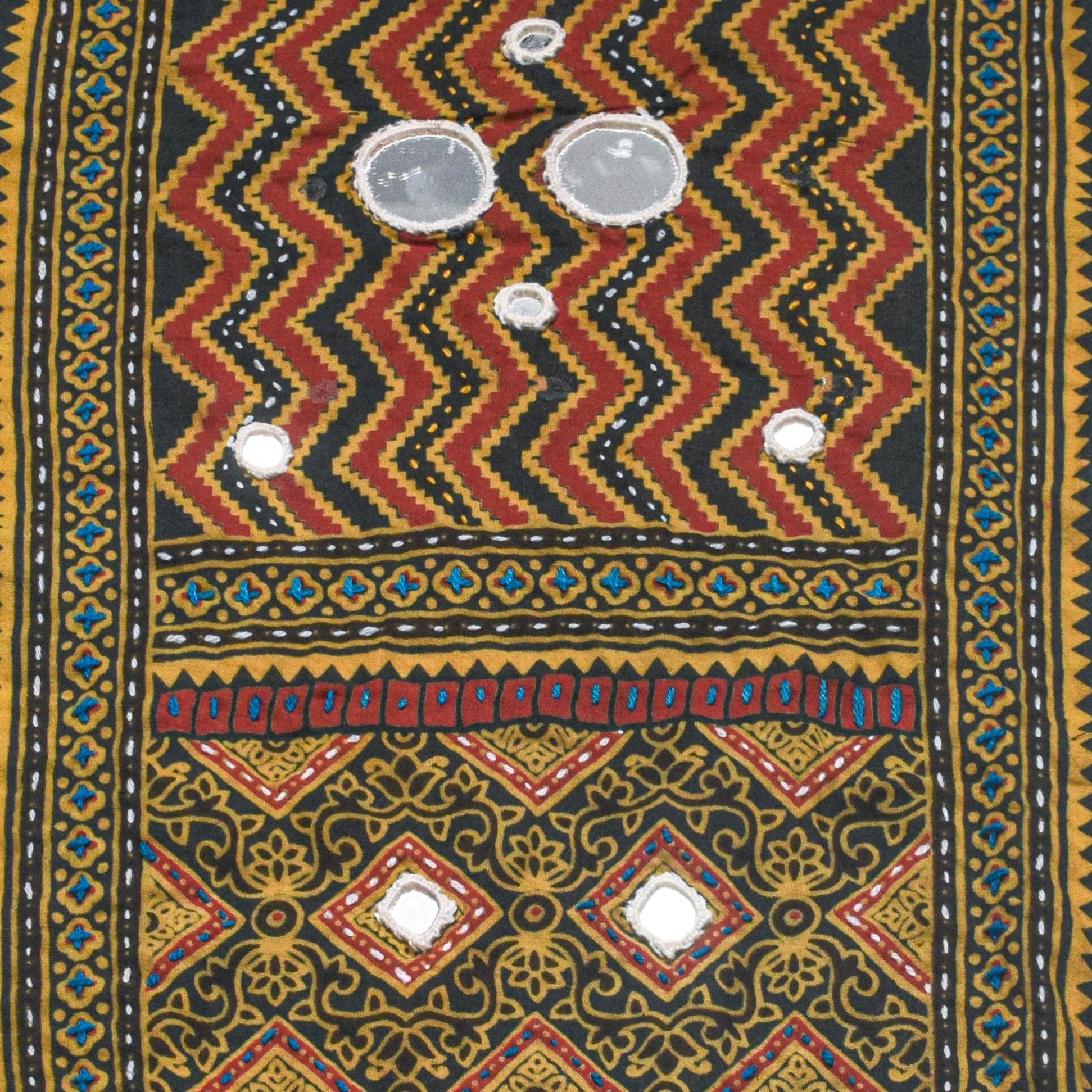 * UNIQUE FEATURE : Mirrors are Embroidered with Fine and Colourful Hand Embroidery in closely knit pattern, done by Pakko Community Women of Kutch – popularly known as Kutchhi Pakko Work