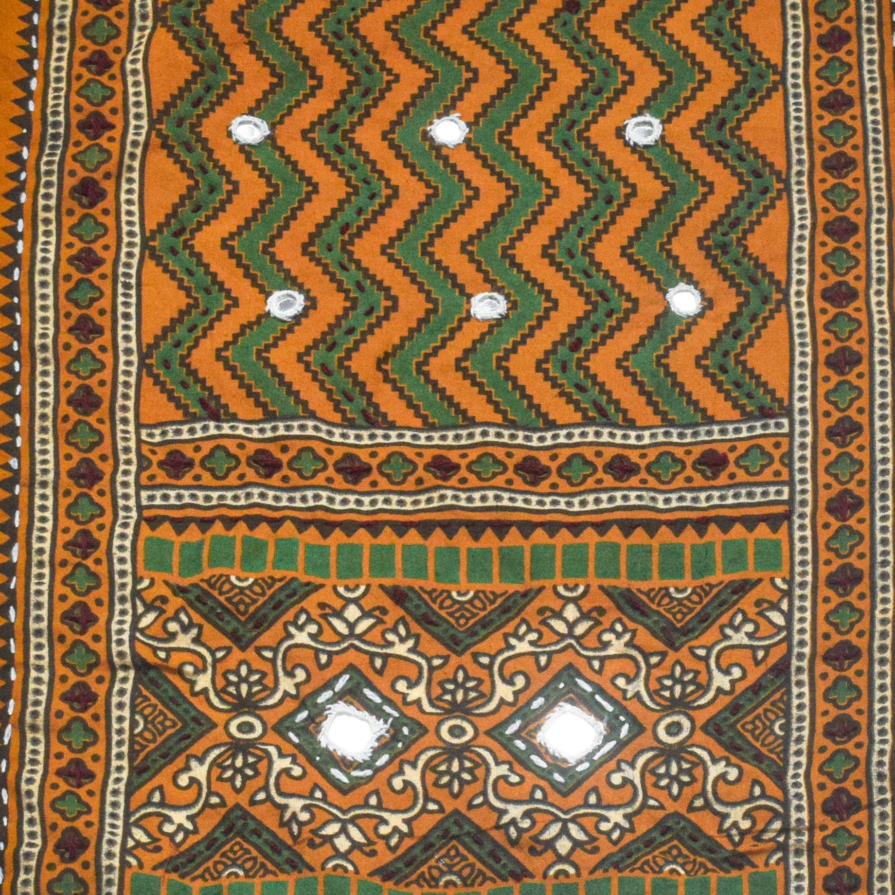 Ajrakh Cotton Natural Dye Small Mirror Work Hand Block Print Yoke Fabric Applique Patch For Kurta - 37 cms Length - SKU : ID18803S