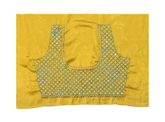Fine Mirrorwork Mashru Silk Hand Embroidered Blouse - Unstitched & Embroidered - 1 Mtr Length - SKU : RD28301G
