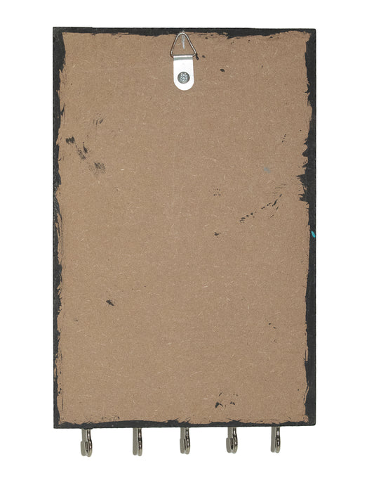 Lippan Kam Wooden Traditional Kutch Handicraft Mud-Mirrorwork Lippan Kam Wall Art Key Holder (Water and Break Resistant) - 9 Inch Length - SKU : 0002-YEBK
